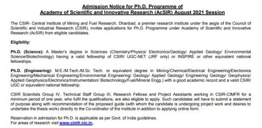 Admission Notice for Ph.D. Programme OF Academy of Scientific and Innovative…