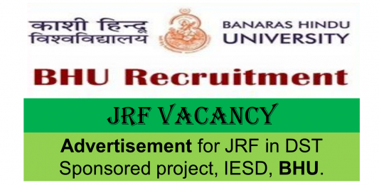 Advertisement for JRF in DST Sponsored project, IESD, BHU