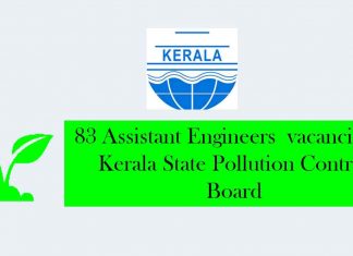 Online Applications are invited by Kerala State Pollution Control Board for qualifiedcandidates for appointment of 83 Assistant Engineers.